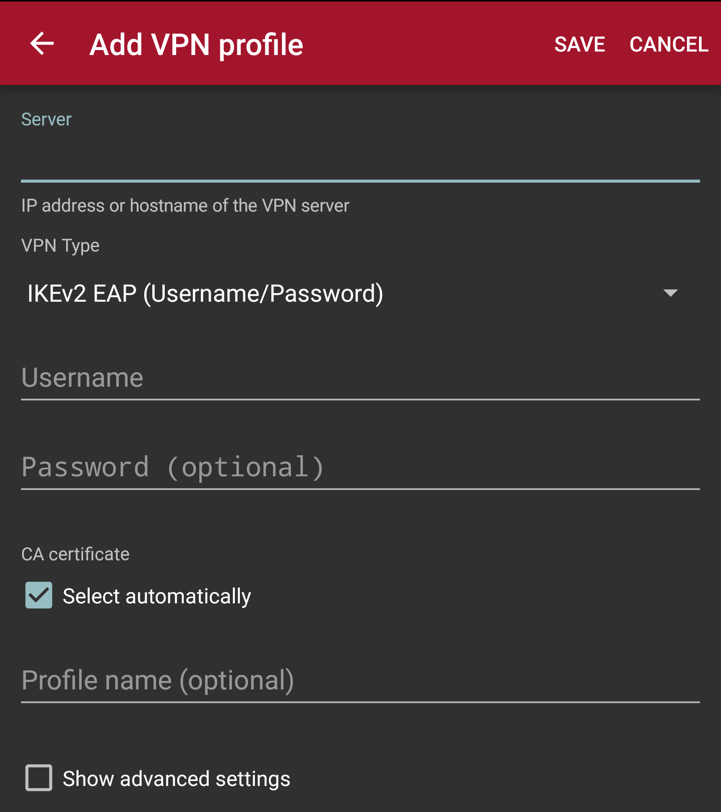 1. Install the free StrongSwan VPN Client from the Google Play Store.